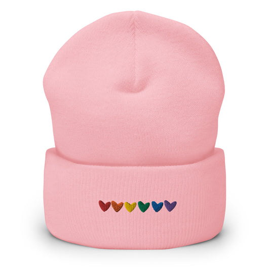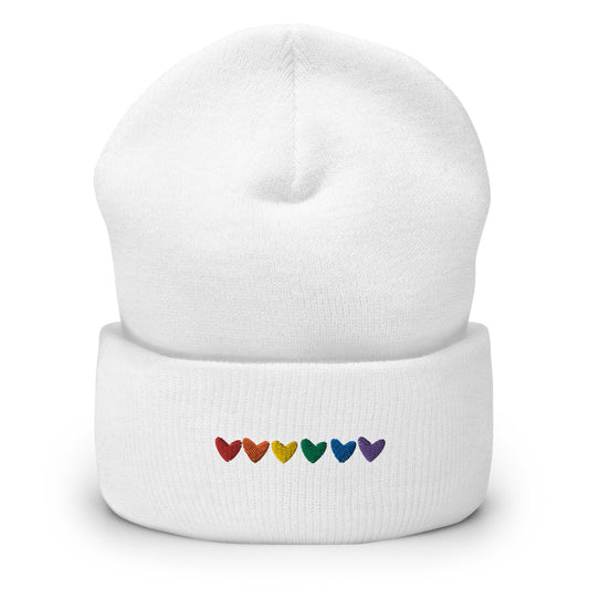 Gay Hearts Embroidered Cuffed Beanie