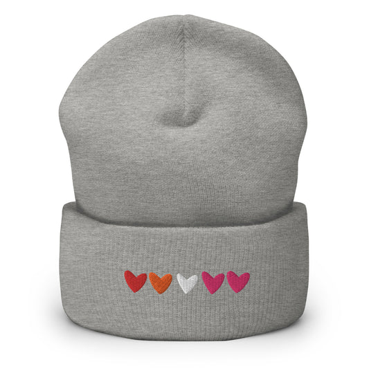 Lesbian Hearts Embroidered Cuffed Beanie