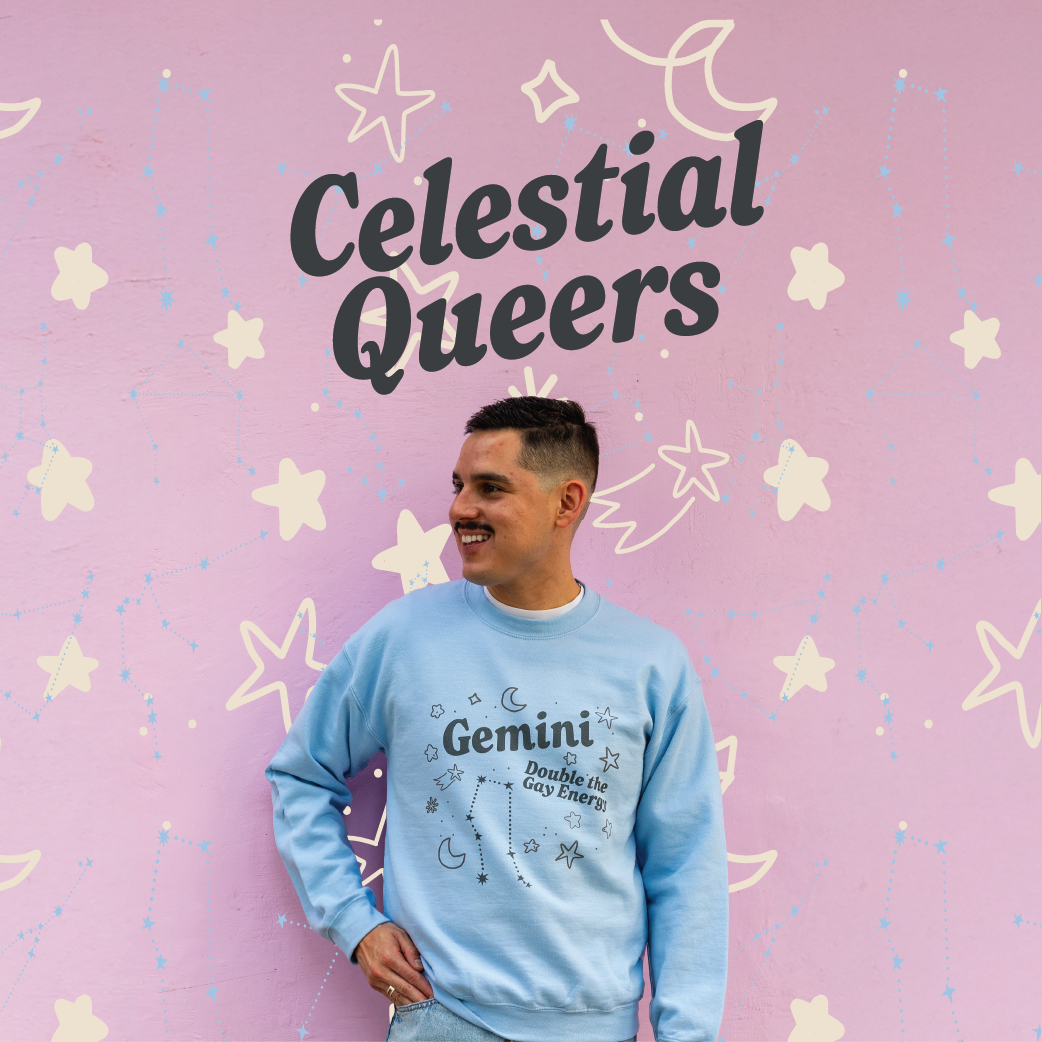 The Celestial Queers Collection blends the cosmic power of the zodiac with bold, queer pride. Featuring both embroidered and printed designs, this collection celebrates individuality and celestial vibes. From Aries Born to Sparkle to Pisces Creating Queer Dreams, wear your zodiac sign and your pride with radiant confidence.