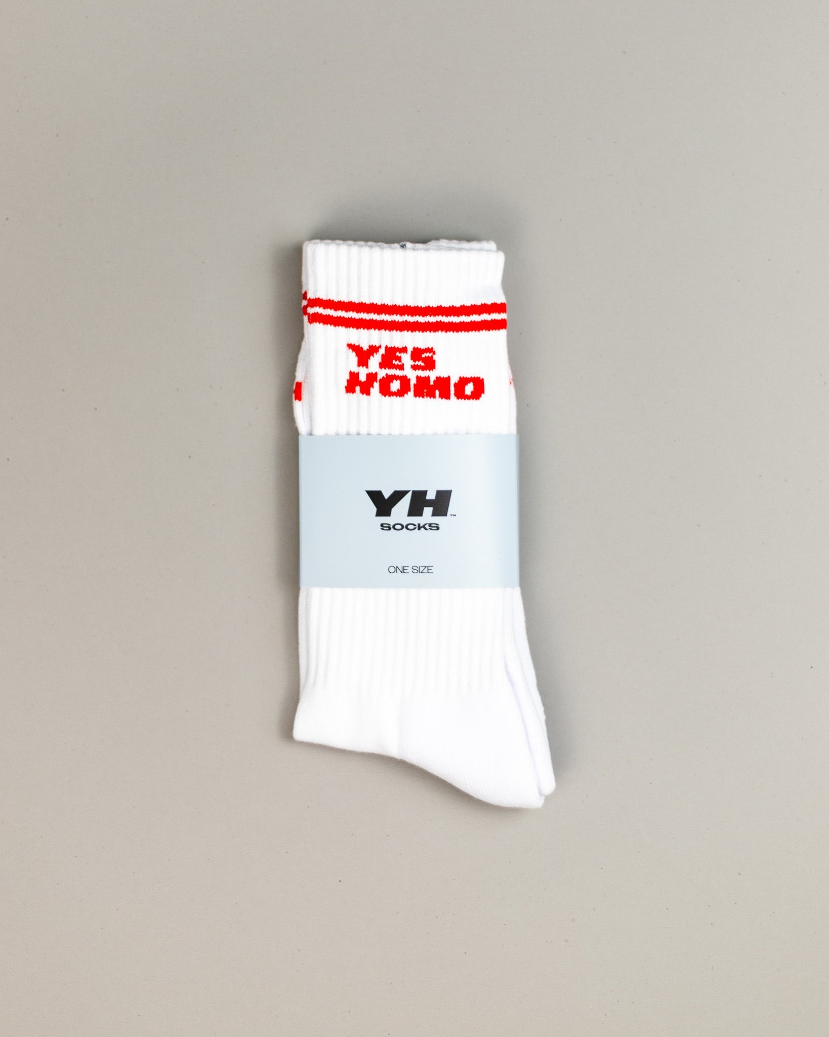 Soft, tight, and just the right amount of dirty. These crew socks feature bold Yes Homo lettering with two athletic stripes that ride high and stay snug. Underneath? Yes on one sole, Homo on the other so every step makes a statement. And a reminder of "YES HOMO" over the toes.