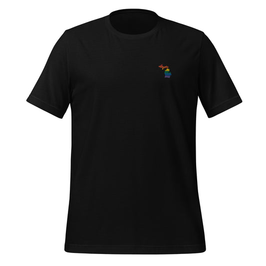 • Camiseta unisex bordada con cuadrados de arcoíris