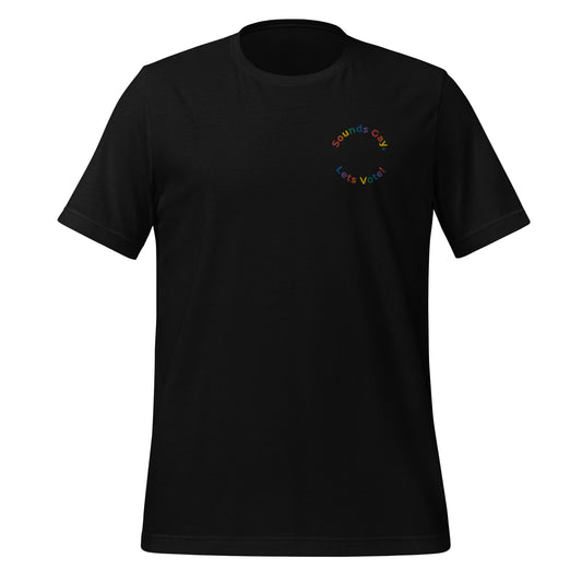 Camiseta unisex bordada "Suena gay, vamos a votar"