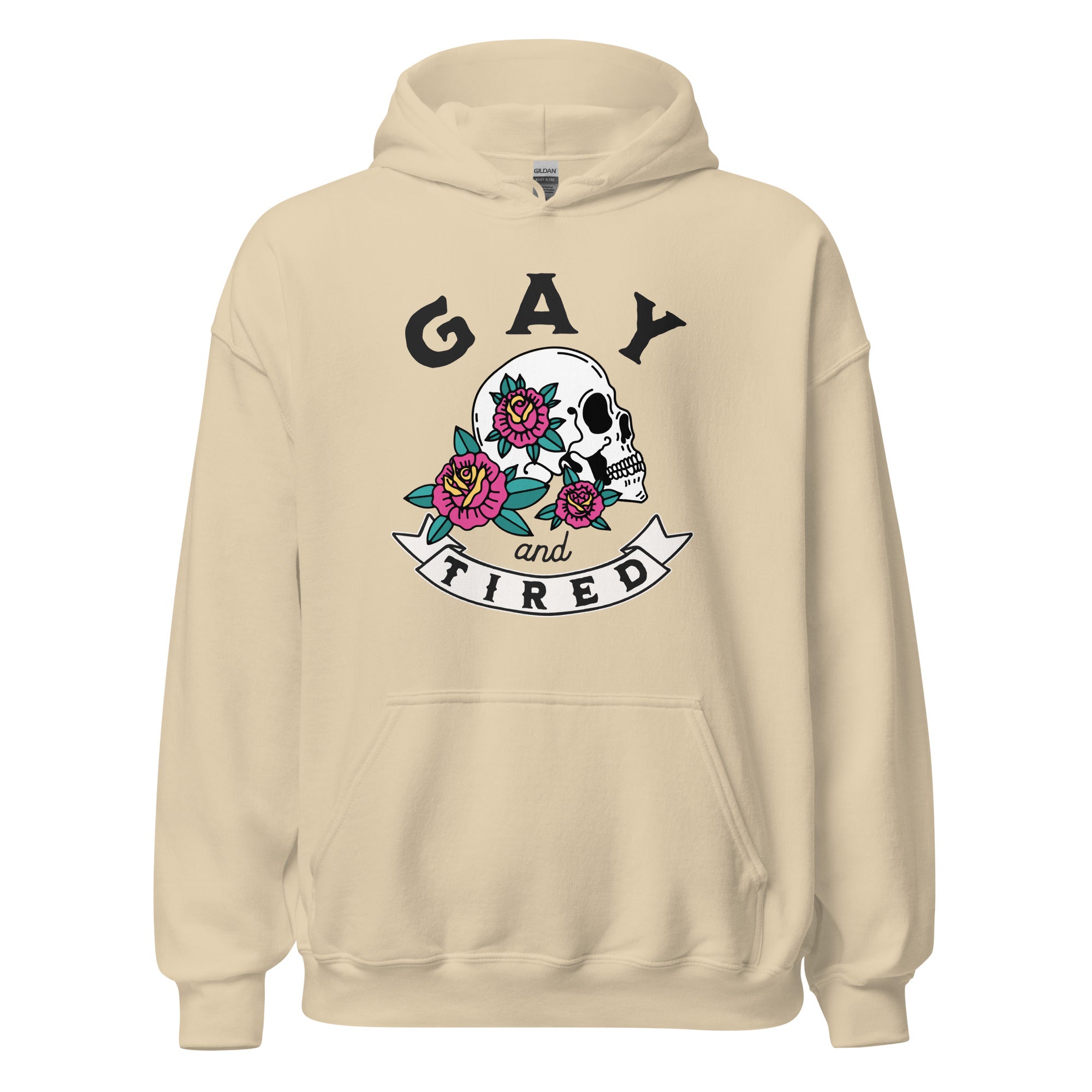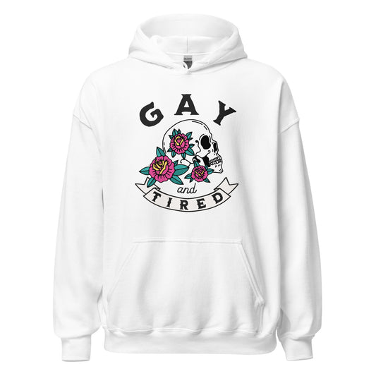 Sudadera unisex con capucha y calavera gay y cansada