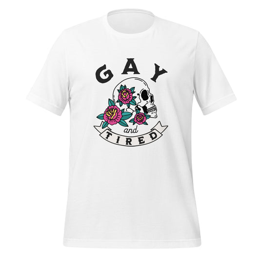 Camiseta unisex con calavera gay y cansada