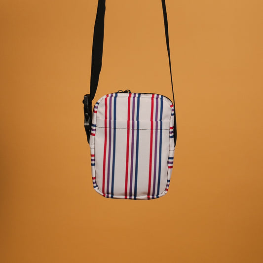 Bolso bandolera con rayas asexuales. Lleva tus objetos esenciales con estilo con este accesorio vibrante que presenta los colores icónicos de la bandera del orgullo asexual. Práctico y elegante, es perfecto para el uso diario y muestra con orgullo tu identidad dondequiera que vayas.