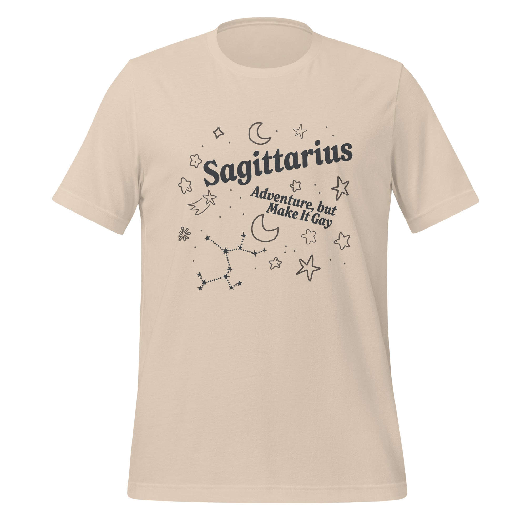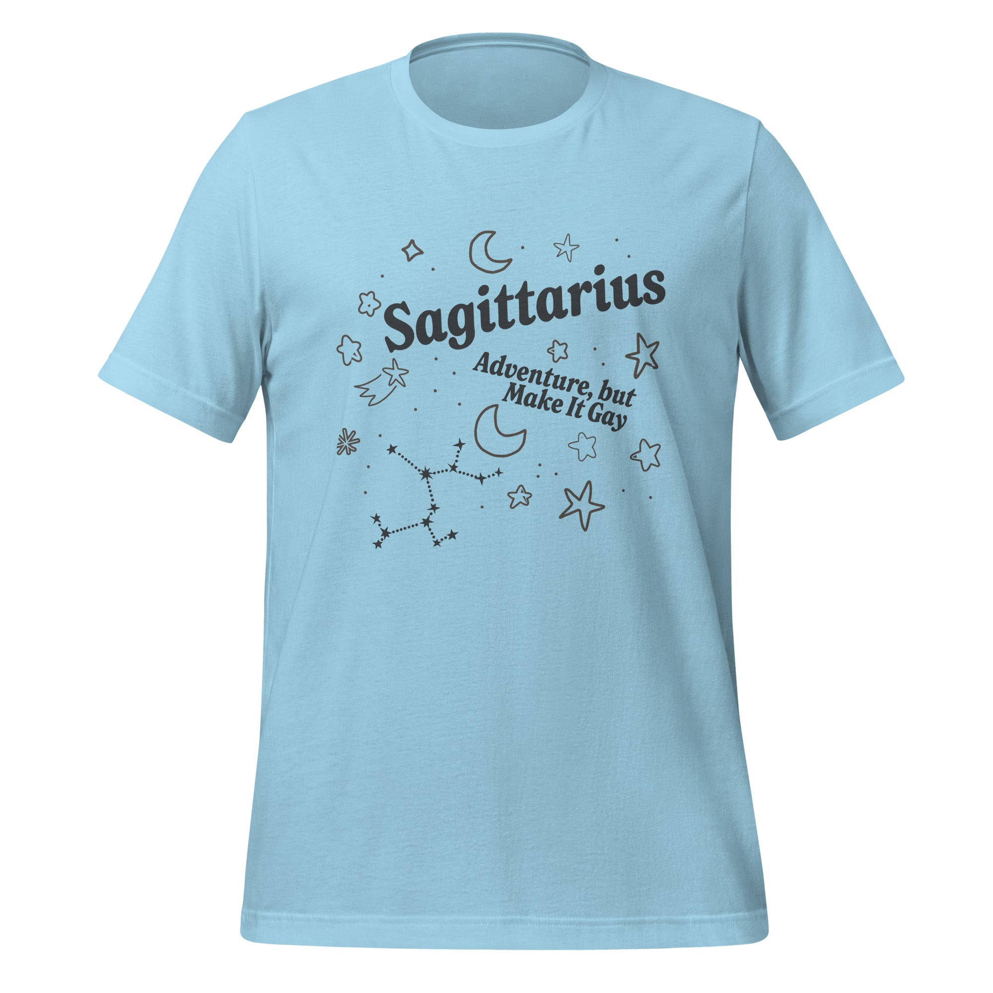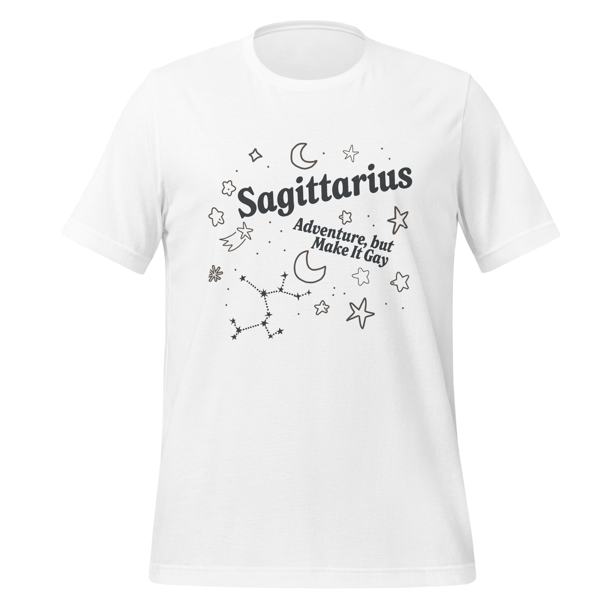 Celebra tu espíritu aventurero con la camiseta unisex "Aventura, pero hazlo gay" de Sagitario. Con diseños celestiales, la constelación de Sagitario y la audaz frase "Aventura, pero hazlo gay", esta camiseta ligera y elegante es perfecta para mostrar tu signo zodiacal y tu orgullo de espíritu libre. ¡Una prenda imprescindible para cualquier Sagitario audaz!