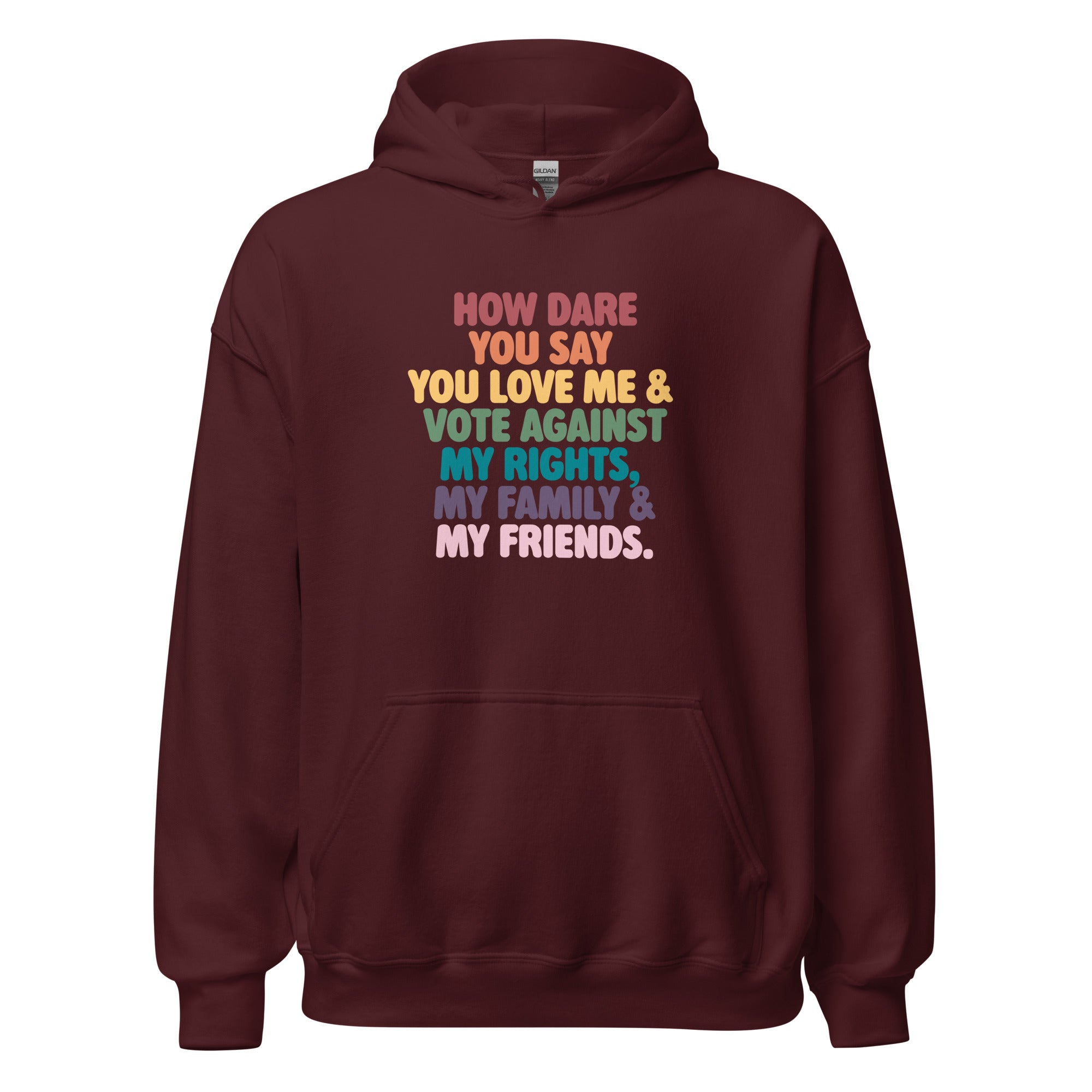 How Dare You Say You Love Me & Vote Against My Rights, My Family & My Friends Unisex Hoodie