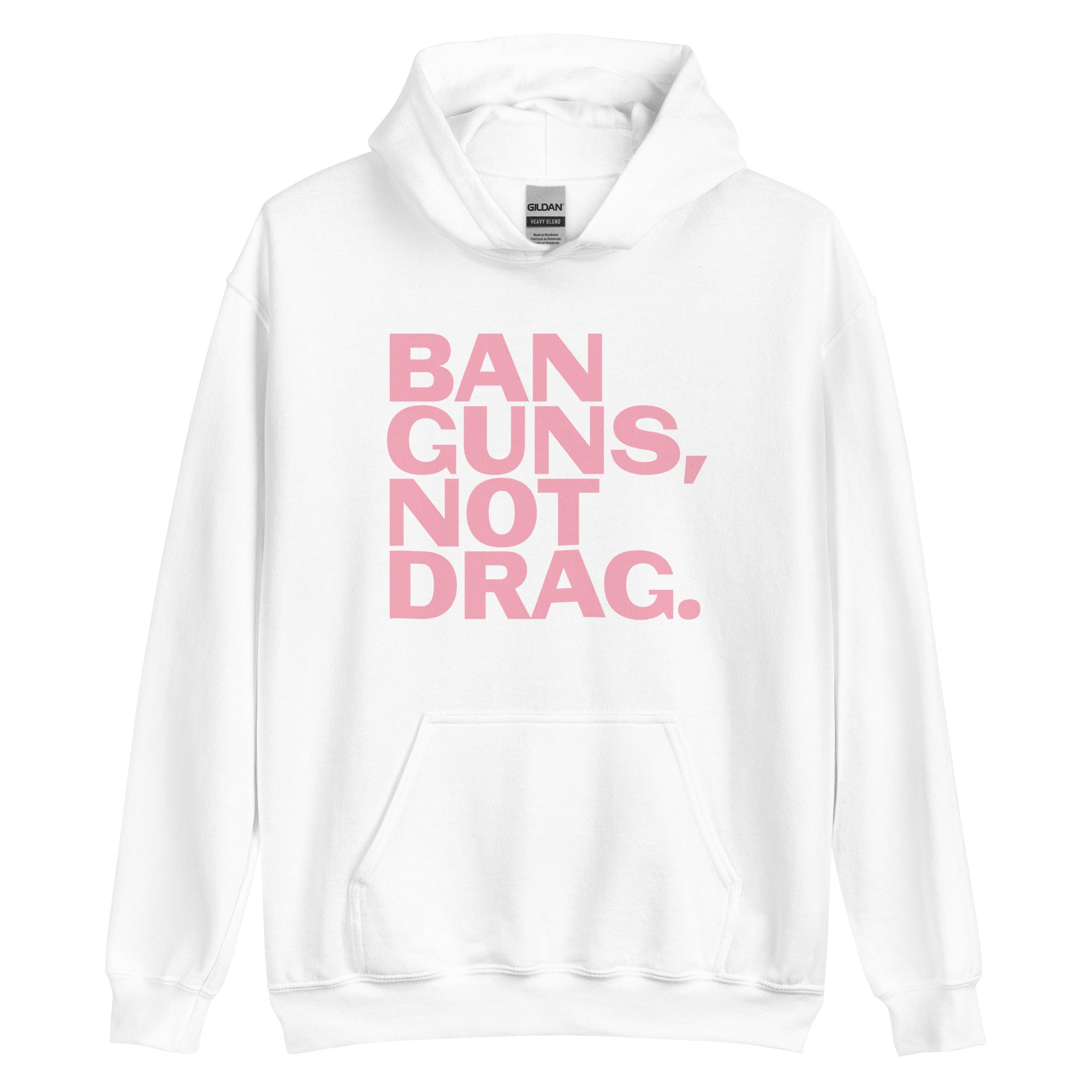 Make a statement with our 'Ban Guns, Not Drag' Hoodie. Soft, cozy, and powerful, it's perfect for advocating change. Join the movement for peace and diversity!