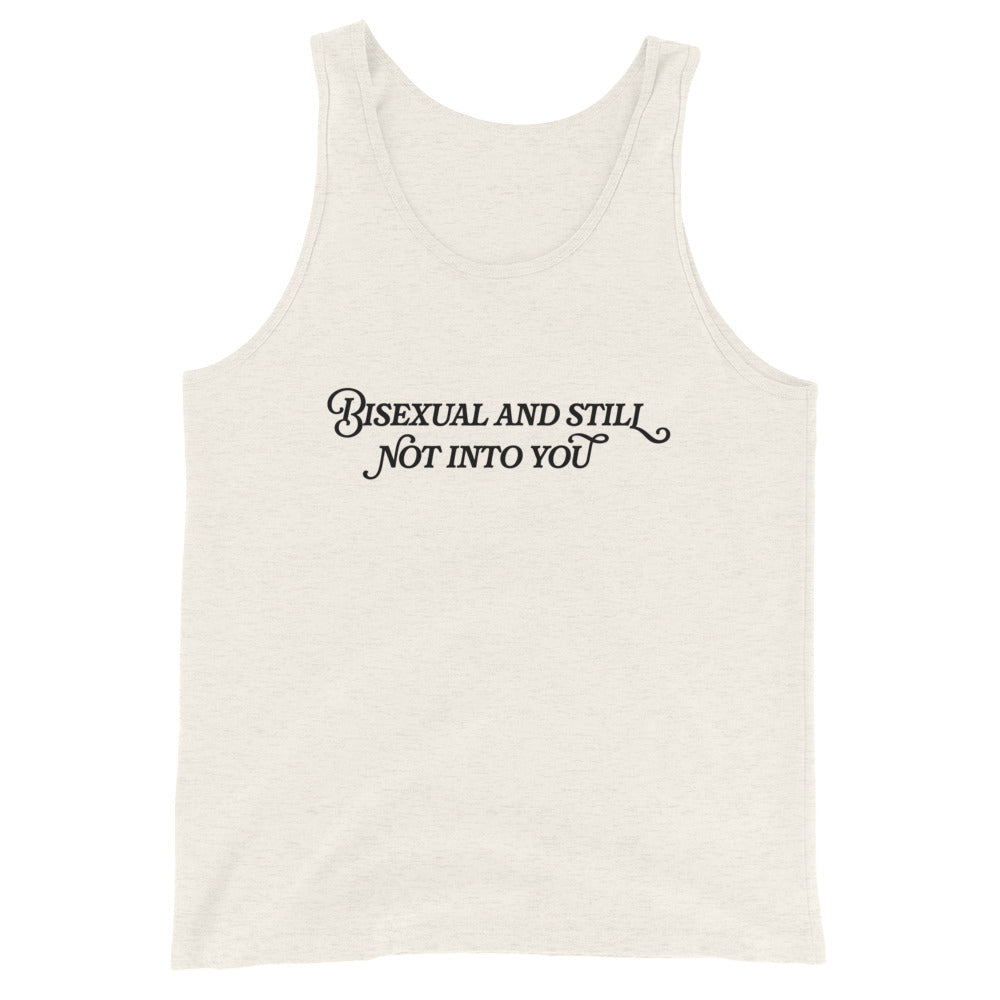 Our Bisexual and Still Not Into You Unisex Tank Top is here to make a bold statement with a playful twist! Designed for ultimate comfort and breathability, it’s perfect for sunny days, pride celebrations, or just reminding the world that your orientation doesn’t equal attraction. Flaunt your confidence and pride in a tank that’s as unapologetic as you are.