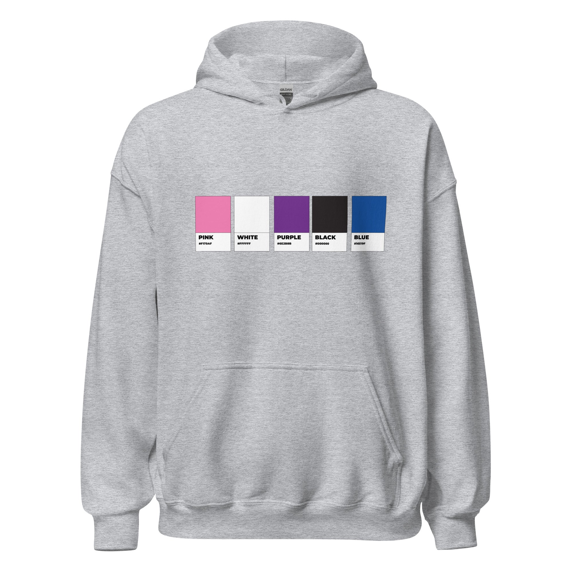 Show off your pride with our Genderfluid Colors Swatch Hoodie!