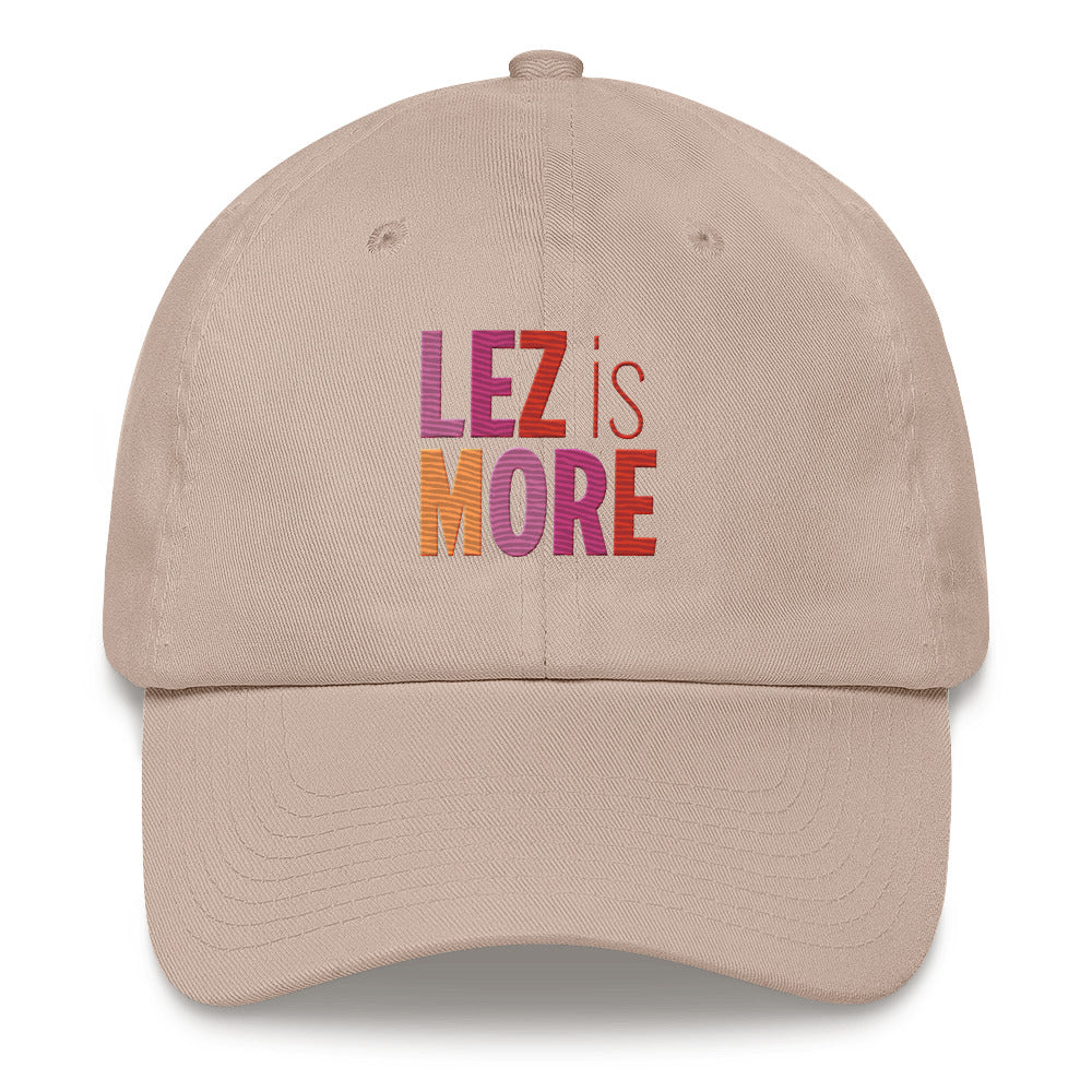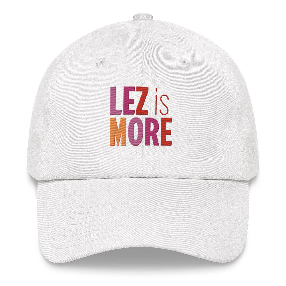 "Lez is More" Dad Hat! Embrace your lesbian pride with this stylish hat. Adjustable and premium quality, it's the perfect way to celebrate being authentically you!