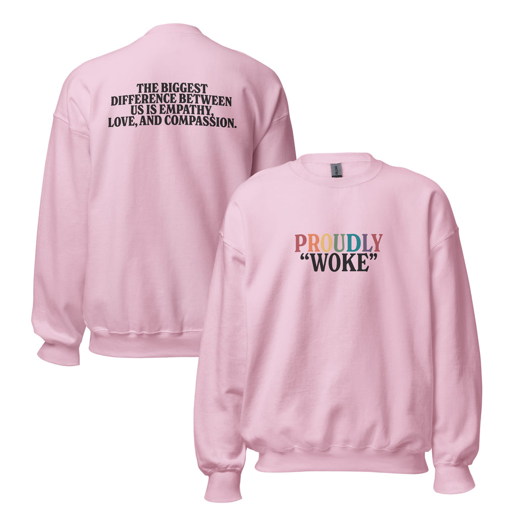Stand for inclusivity with our Proudly “Woke” Unisex Sweatshirt. Featuring “Proudly” in vibrant rainbow colors, this design reclaims the word as a symbol of awareness and justice—no matter how much Trump and his followers try to twist it. Made from soft, high-quality fabric with a relaxed fit, it’s perfect for Pride, activism, and everyday wear.